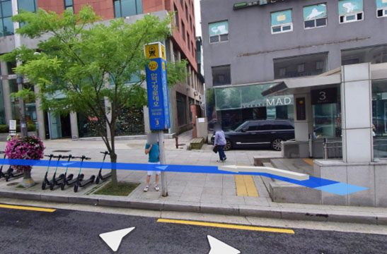 3 パク・スンチョルヘアスタジオが見えるまで直進した後、前にある横断歩道を渡ります。